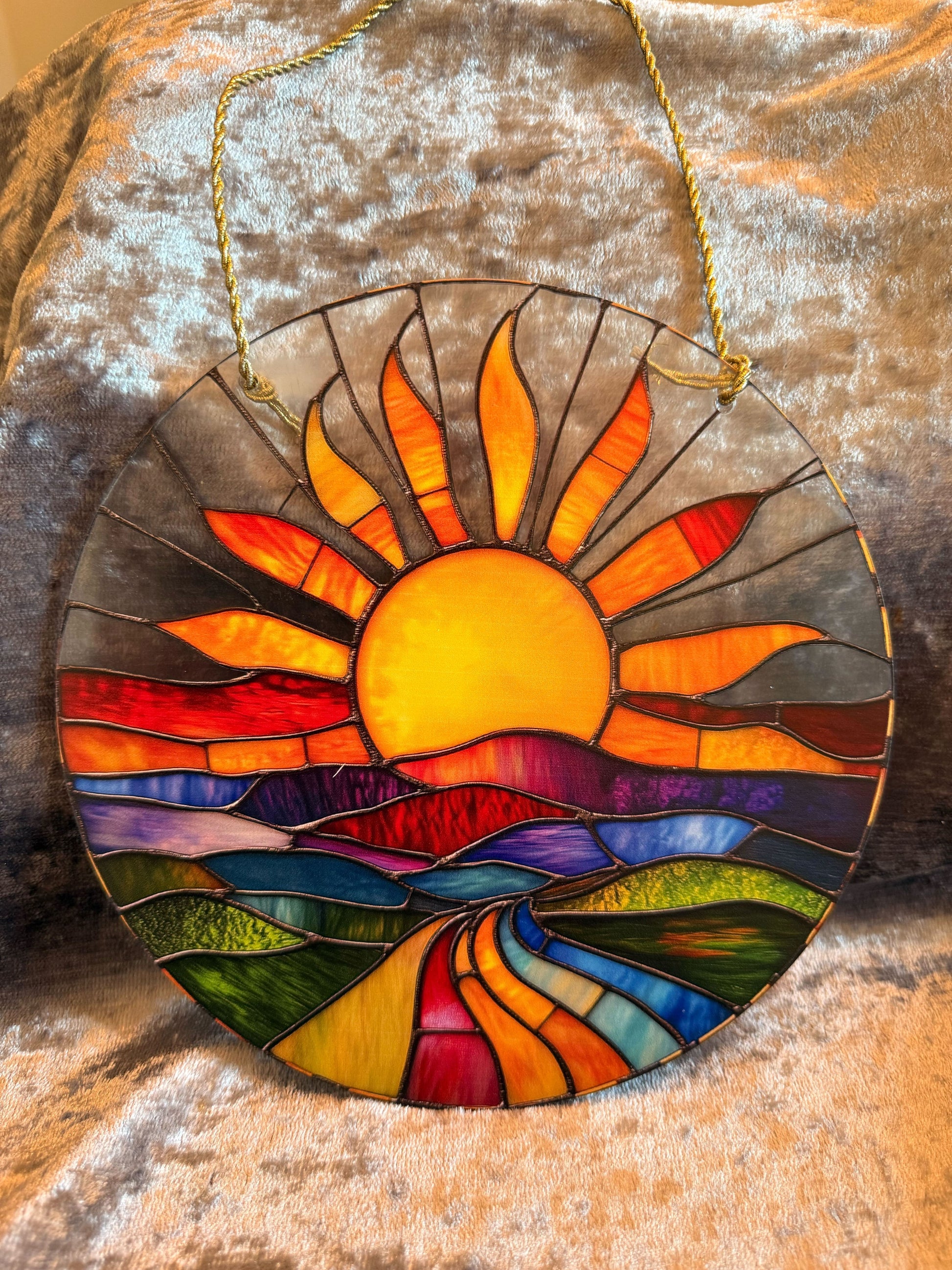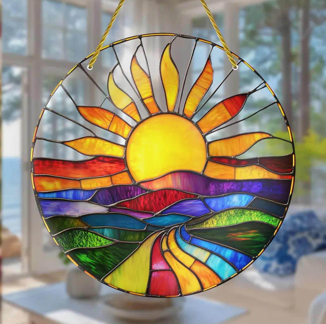 Bring a touch of handcrafted beauty and spiritual warmth to your home with this unique stained glass suncatcher. Featuring a vibrant sunburst design, it's like capturing a piece of the Aussie sunshine to brighten your day and uplift your spirit.