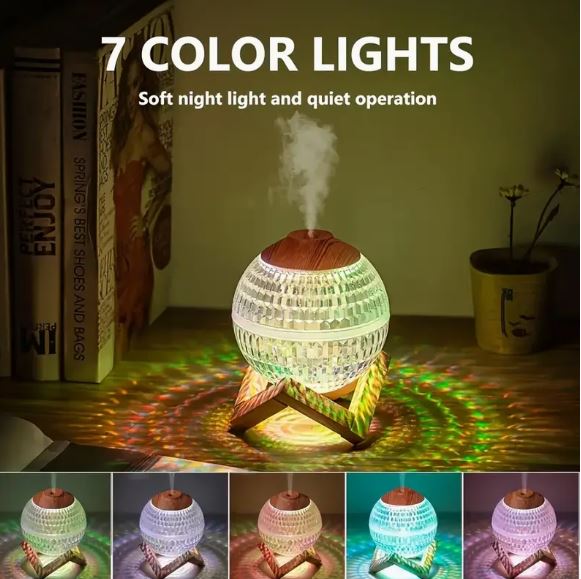 Bring calm, color, and comfort into your space with this stunning crystal ball humidifier. Designed with a sleek transparent finish and wooden stand, it doubles as a soothing night light and a modern décor piece.