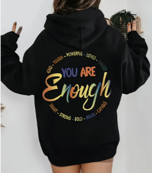 Wrap yourself in comfort and positivity with this uplifting plus size hoodie, featuring the inspiring quote “You Are Enough.” Designed to remind you of your worth while keeping you cozy, it’s the perfect blend of style, comfort, and self-love.