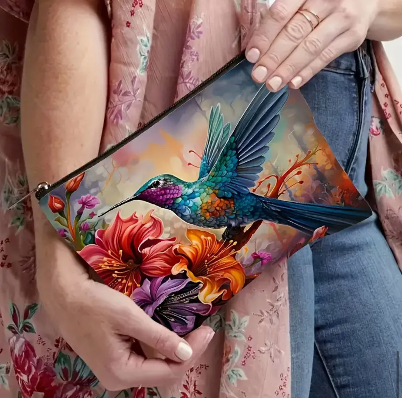 ✨ Travel in Style! Hummingbird & Floral Pouch ✨