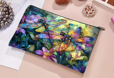 🌸Sanrio Stained Glass Dragonfly & Floral Travel Cosmetic Bag🌸