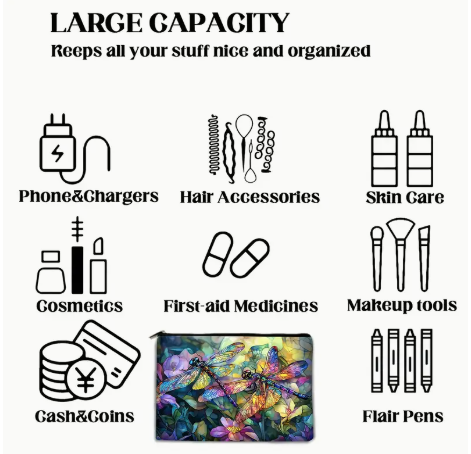 Add a touch of whimsy to your travels with this Sanrio Stained Glass Dragonfly & Floral Travel Cosmetic Bag. ![]()