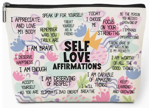 This gorgeous self love affirmation bag is for your daily dose of positivity, designed to nurture self-love and support mental well-being. It's a little reminder that your inner beauty shines brightest!