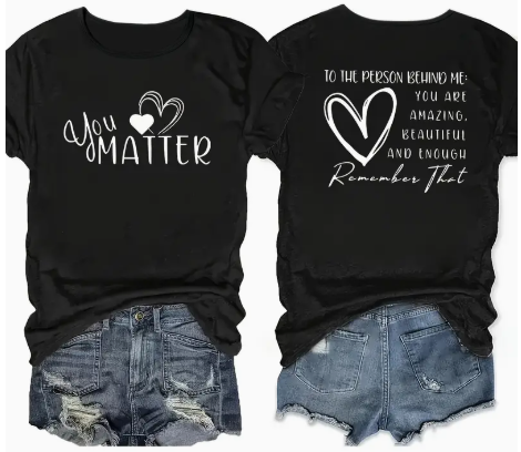 Back: A heartfelt note to the world: To the person behind me, you are amazing, beautiful and enough. Remember that. π