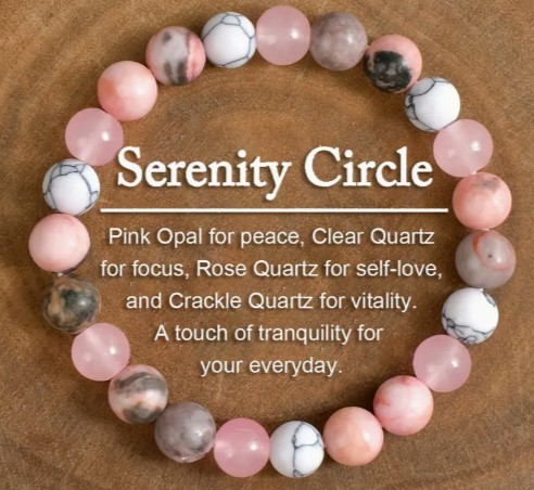 Experience the harmonious energy of the Unique Serenity Circle Bracelet. Featuring genuine Pink Opal, known for its gentle and nurturing vibrations, paired with the purifying and calming essence of White Turquoise. This bracelet's unique circle charm symbolizes wholeness and serenity. A thoughtful gift to inspire inner peace in your loved ones.