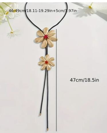 Make a statement with this stunning vintage-inspired long Y-necklace, designed to bring elegance and sophistication to any outfit. Featuring bold floral rhinestone accents in a striking black and golden flower design, this piece captures timeless beauty with a modern touch. The radiant red gemstone center adds a captivating pop of color, making this necklace a must-have for those who appreciate intricate craftsmanship and unique fashion pieces.