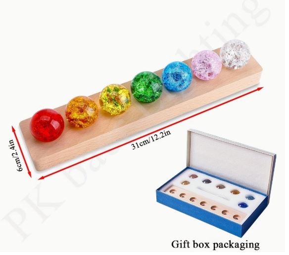 Transform any room into a serene sanctuary with our 7pcs Spheres LED Night Lighting Crystal Ball Set. Each crystal-clear sphere glows with vibrant LED colors, sitting atop a beautifully crafted wooden base that doubles as ambient décor. Featuring a dreamy galaxy backdrop and charming astronaut figurines, this piece brings cosmic calm to your meditation, living room, or bedside space.