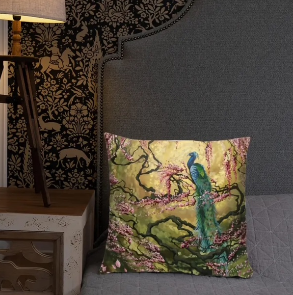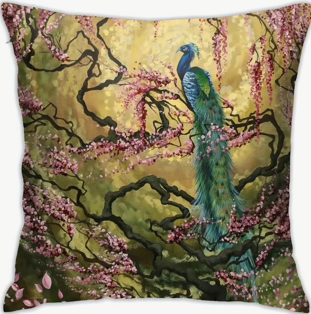 🦚Bloom Beautifully: Peacock & Blossoms Decorative Pillow Cover 🦚