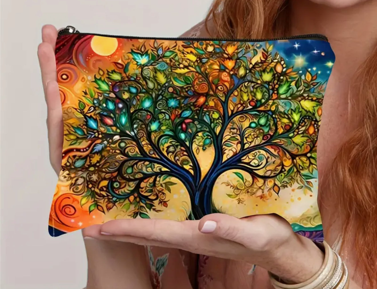 ✨Connect to the earth and the heavens with our beautifully designed canvas makeup bag, featuring the ancient and powerful Tree of Life. This symbol represents: