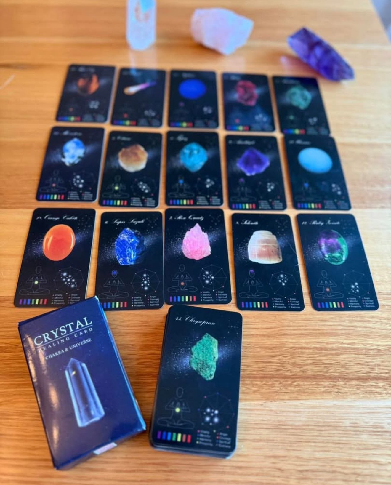 Let Topaz light up your throat chakra with calm communication, or draw strength from Mars as it fuels your courage and inner fire. With every shuffle, you’ll uncover intuitive insights, chakra messages, zodiac guidance, and soul whispers from the universe.