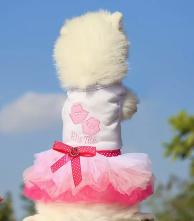 Spoil Your Pup with Sweet Style! Chic Pink kiss me Lips Tulle Dog Dress