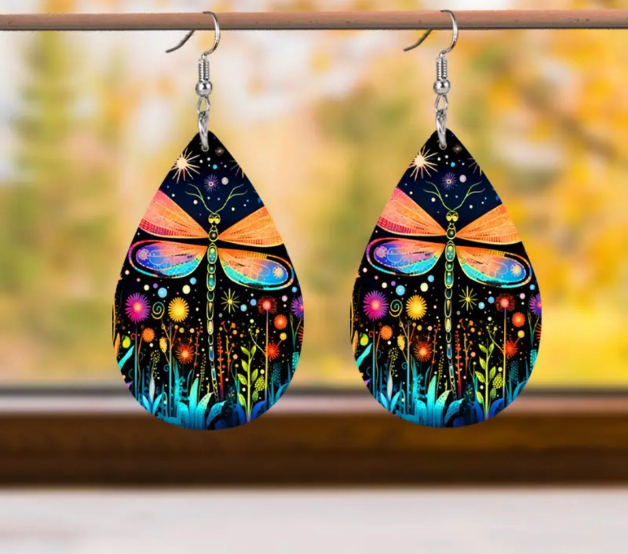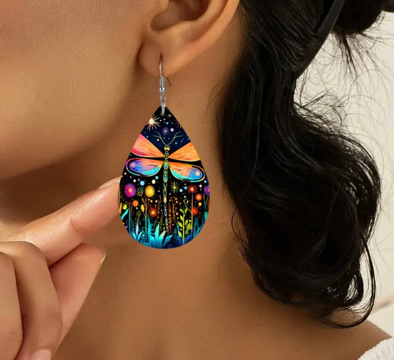 ✨Dazzle and Delight: Introducing Our Colourful Starry Sky Flower Dragonfly Leather Earrings!✨