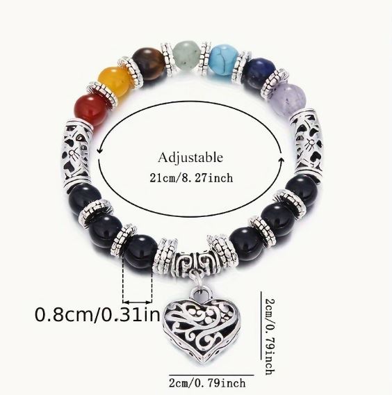 Channel balance and beauty with this elegant vintage chakra bracelet, featuring natural 7 chakra stones, lotus accents, and a beautifully detailed heart-shaped filigree charm. Designed for everyday mindfulness or thoughtful gifting, this bracelet blends energy alignment with timeless design.