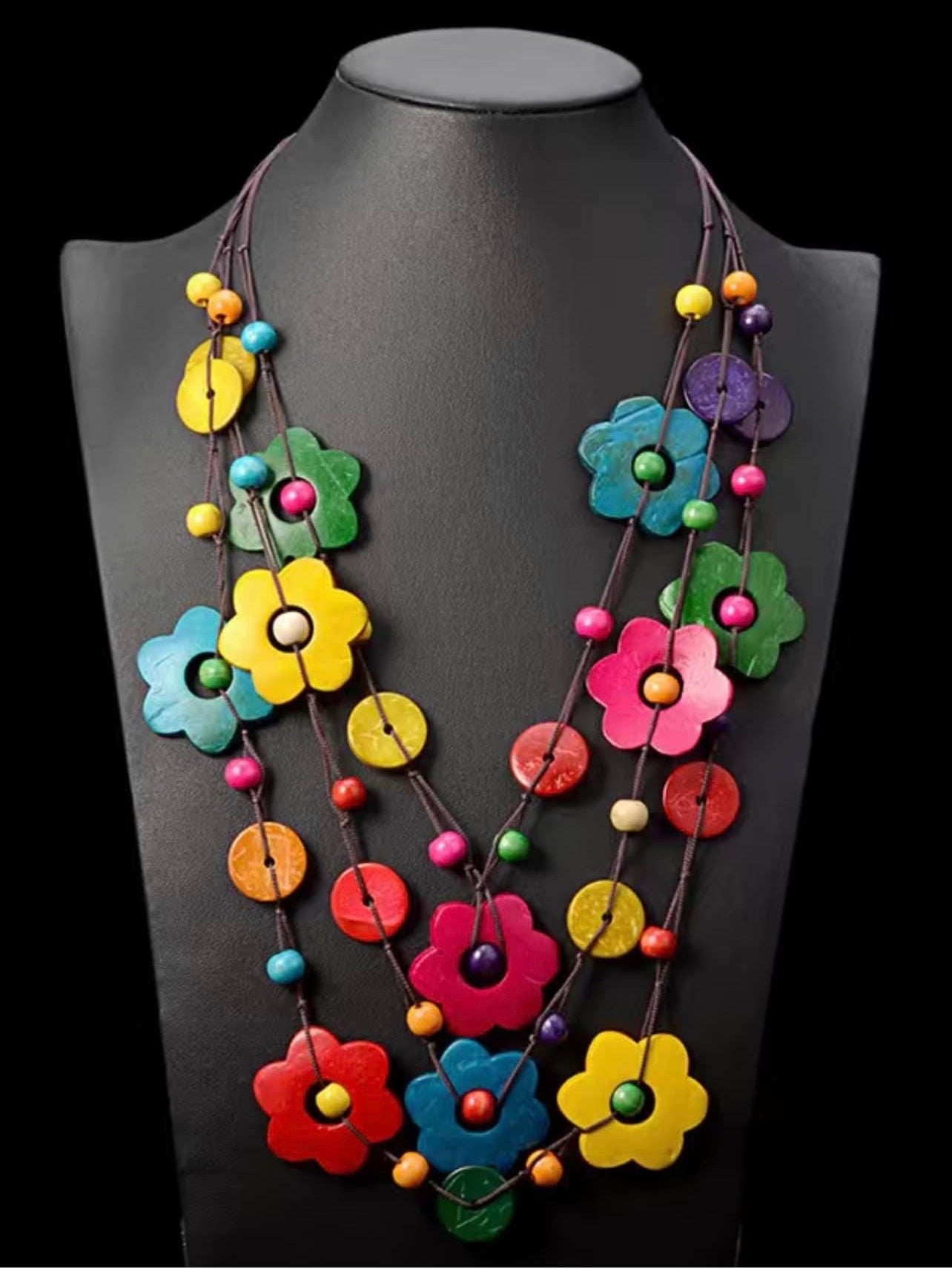 ๐บ๐ผ๐นBloom with Boho Beauty: Introducing Our Handmade Multilayer Wooden Flower Necklace!๐น๐ผ๐บ