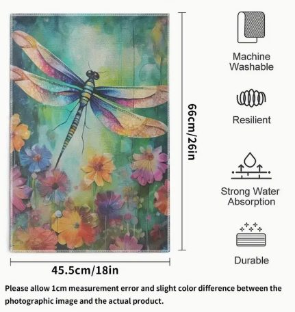 Let these lightweight, highly absorbent towels become a mindful addition to your daily rituals. As you dry your dishes, allow the whimsical cartoon-themed dragonfly design to uplift your spirit and infuse your space with a sense of wonder and joy.