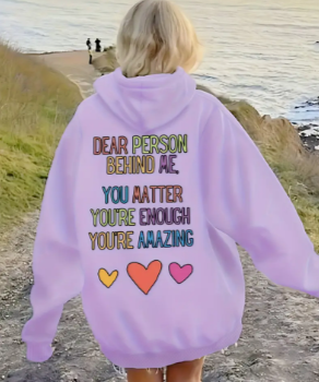 Our newΒ "Dear Person Behind You" hoodie is a gentle reminder to everyone you meet that they are seen, valued, and loved.