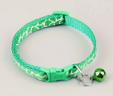 | Polyester Dog Cat Collar with Bell, striped pattern - green |
