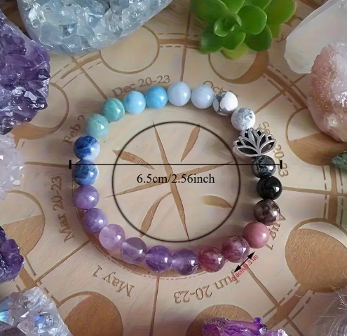 - Combines the power of seven chakra crystals (Amethyst, Lapis Lazuli, Aquamarine, Green Aventurine, Citrine, Carnelian, Red Jasper) to promote overall well-being.