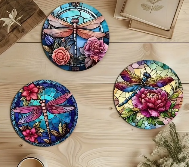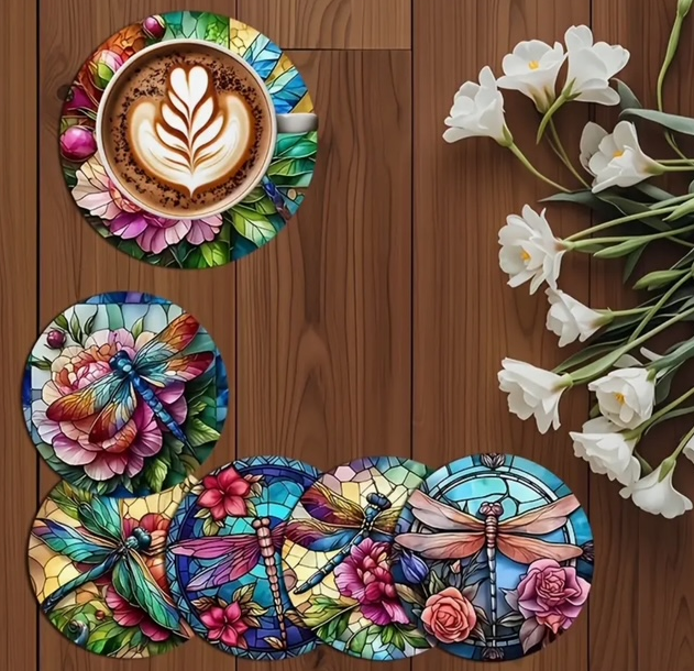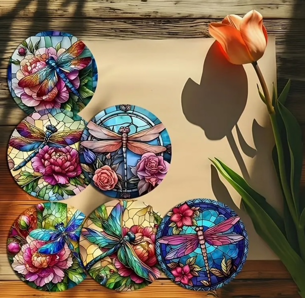 Set of 6 Dragonfly-Inspired Coasters – A Touch of Nature’s Magic