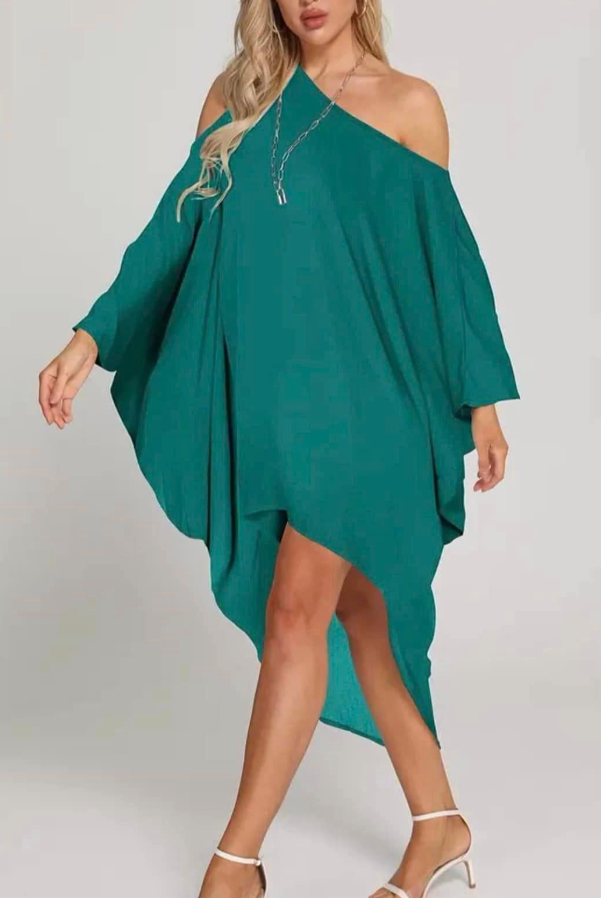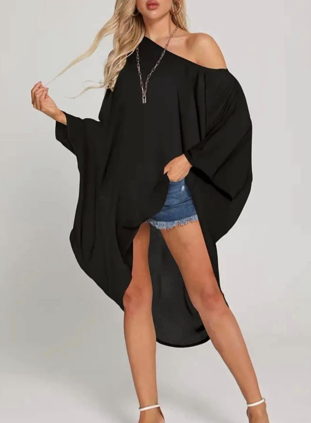 The loose fit and long sleeve provide ample coverage, while the asymmetrical neckline adds a touch of flair.Β One Size fits all