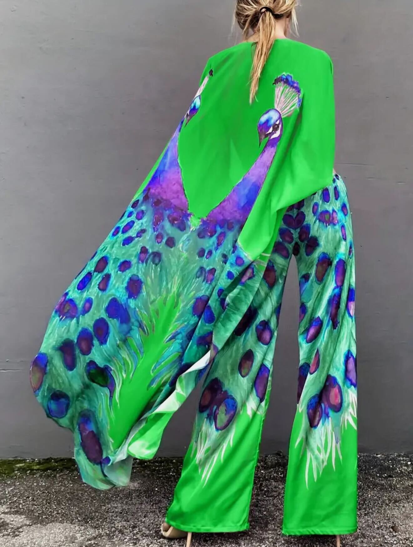 Indulge in the vibrant beauty of our Stunning 2-Piece Set! Inspired by the majestic peacock, this flowing ensemble features bold colours and an effortlessly elegant design that's perfect for making a statement.