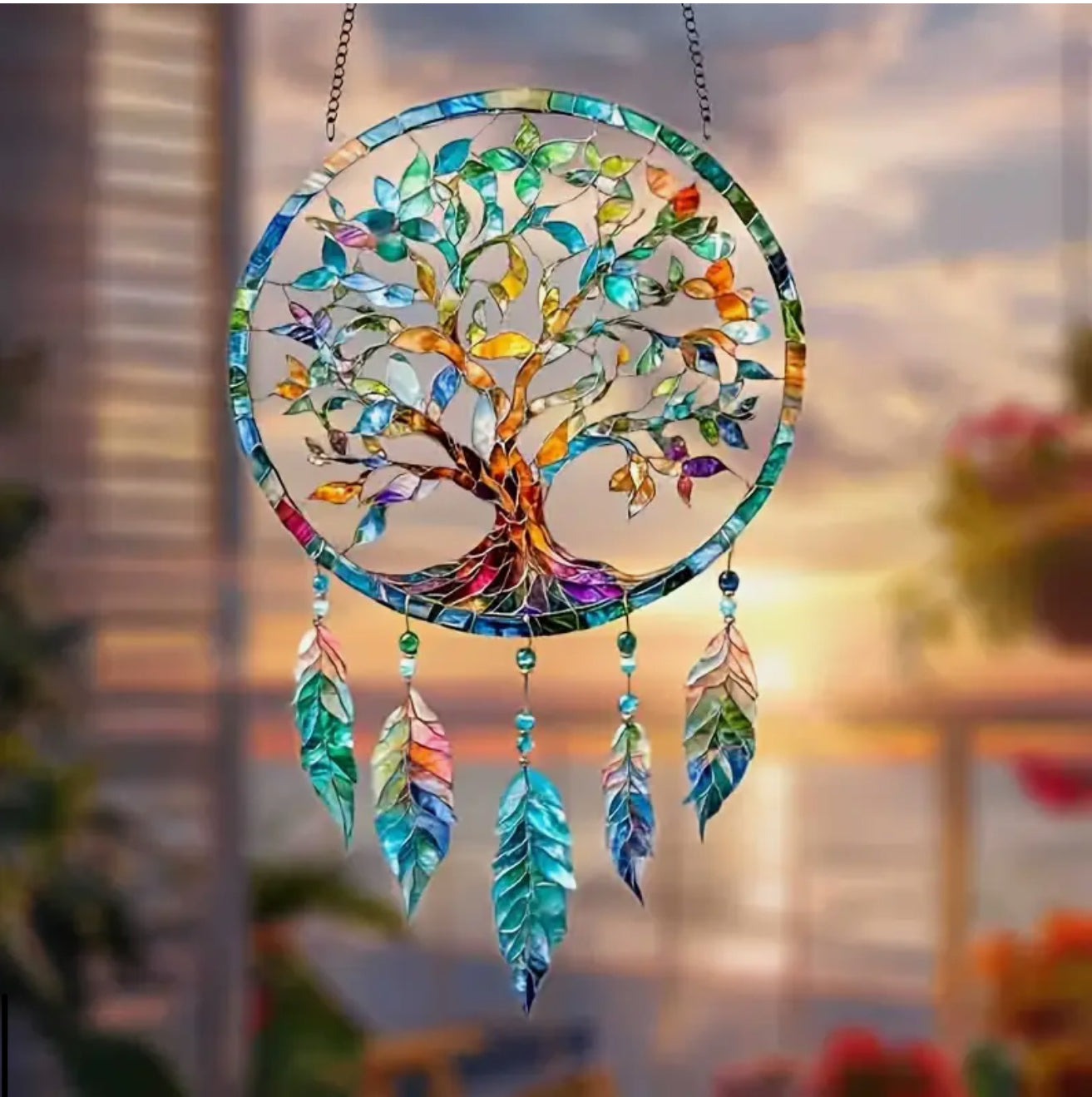Tree of Life Boho Hanging Ornament – Dreamcatcher-Inspired Spiritual Wall Art