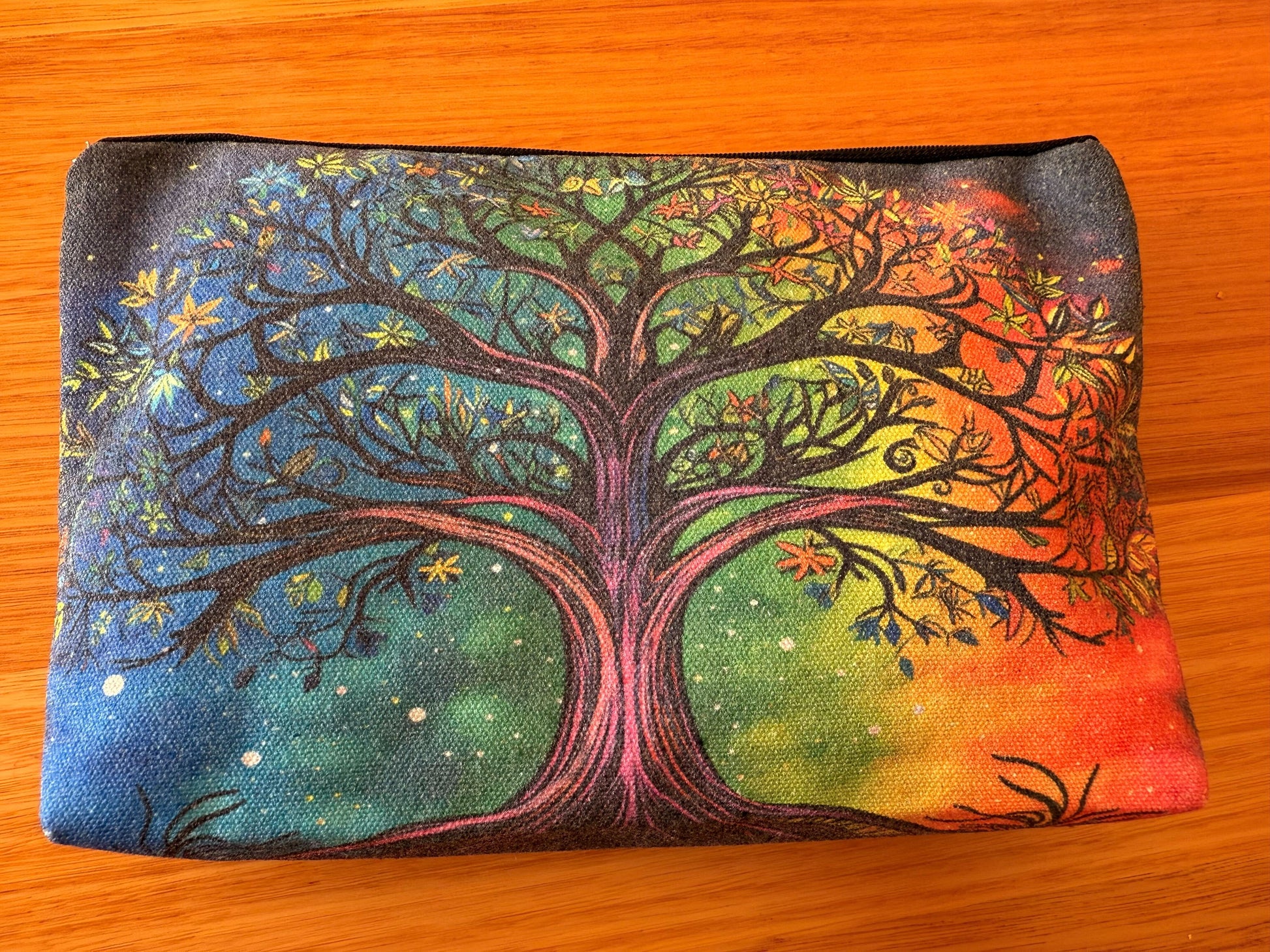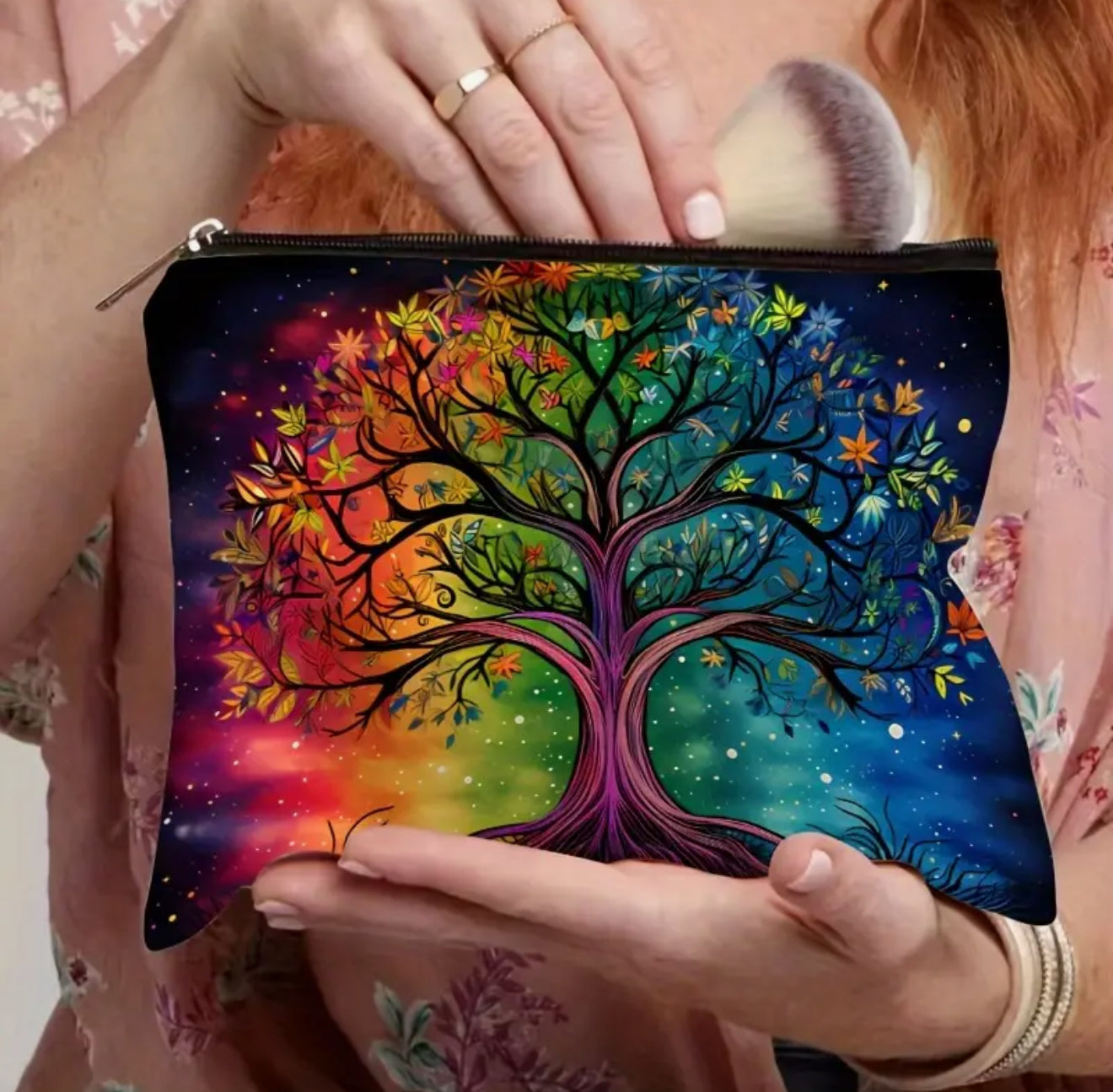 Carry a symbol of growth, connection, and the profound beauty of nature wherever you go. This vibrant pouch features a captivating Tree of Life design, where each color holds deep spiritual significance: