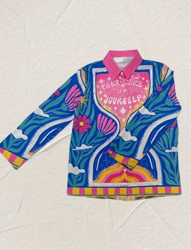 Print: Vibrant floral motifs with “Take Care of Yourself” quote