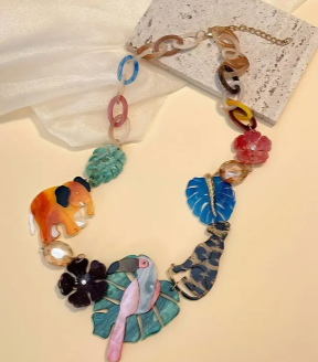 Vibrant Jungle Animal Resin Acrylic Statement Necklace for Women - Handcrafted