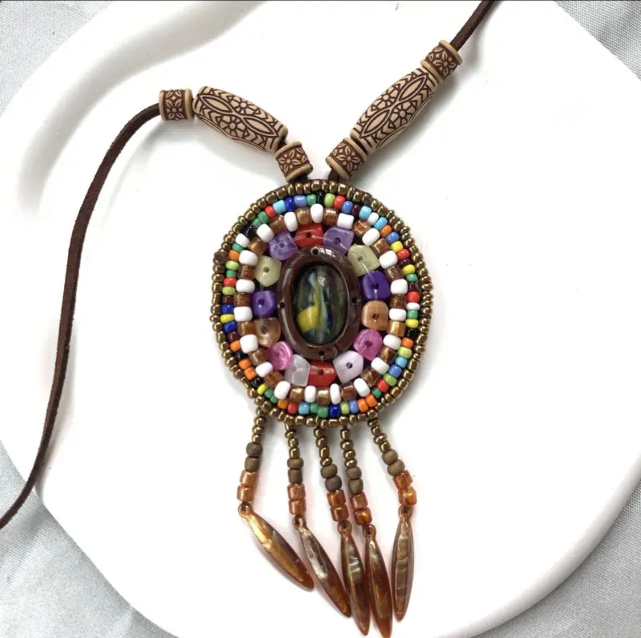 Perfect for adding a distinctive bohemian touch to everyday outfits or completing a special occasion look, this necklace is designed to inspire creativity and a love for unique treasures. Let your inner bohemian spirit shine and embrace the charm of yesteryear with this truly special piece.